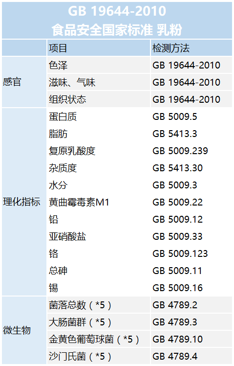 二、乳粉檢測標準